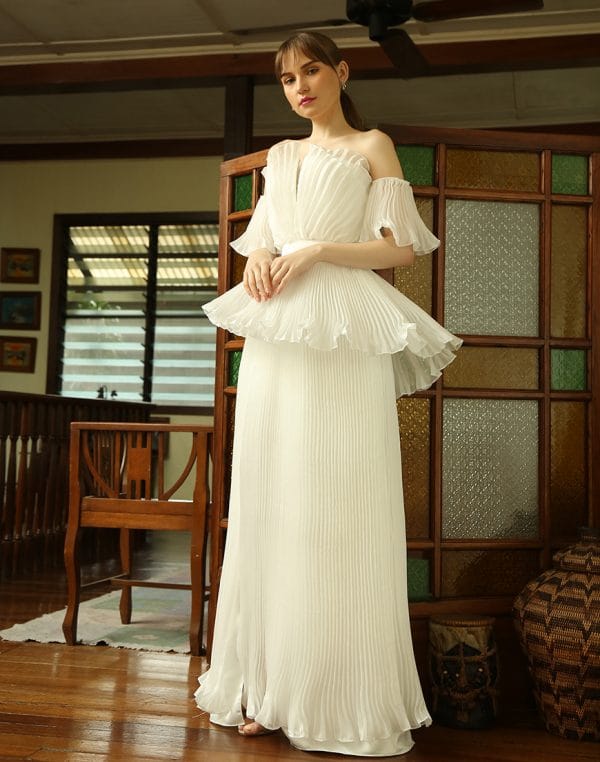 Exaggerated Ruffles in Pleats form. This wedding gown takes months to create and perfect the form. #ChynnaMamawalBride #ChynnaMamawalBridal2021